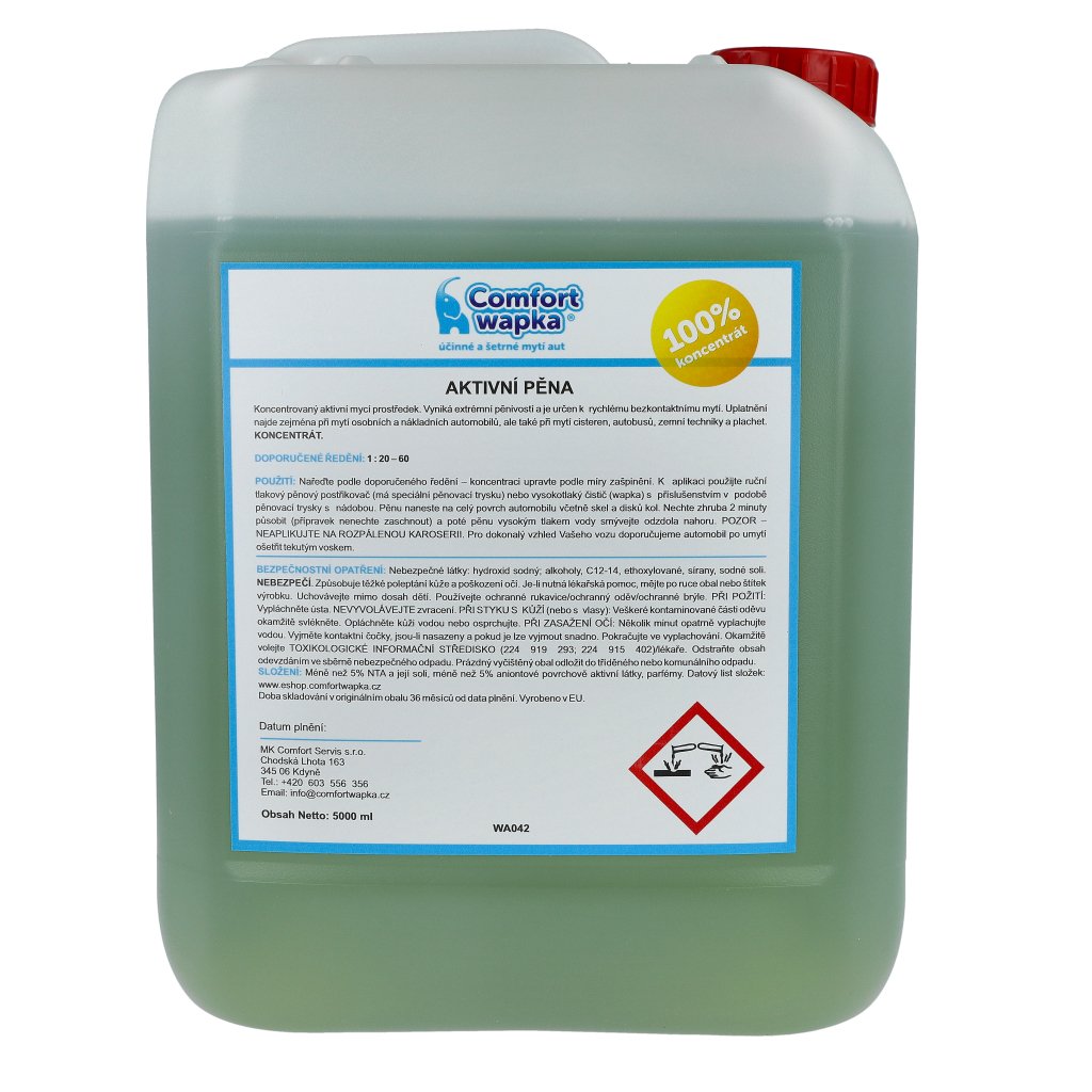 Silně pěnící aktivní pěna Comfort Wapka v 5 l balení je jistota pro všechny, kdo chtějí kvalitní pěnu po ruce a dostatečnou zásobu na dlouho.